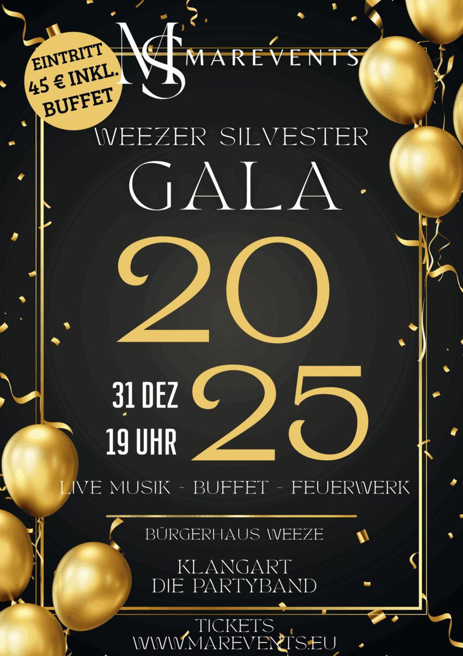 WEEZER SILVESTER GALA 2025 – DER JAHRESWECHSEL MIT STIL